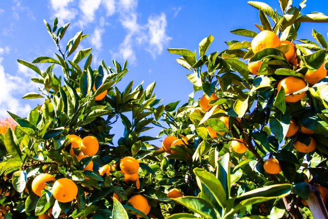 海沿いや山間部など日当たりの良い地にみかんの段々畑があります。